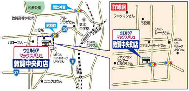 同店はウエルシア薬局(株)の「ドラッグストアウエルシア敦賀中央町店」へのインショップで出店する形をとる。売場面積136坪の小型店だが、生鮮・デリカ・日配部門で日常の暮らしに必要な品揃えを確保し、便利で地域に密着した店舗運営を目指す。敦賀市役所の南300m(徒歩3分)、また県道敦賀・美浜線からは敦賀駅方面に東に250mほどに位置している。