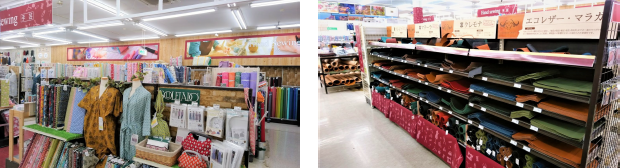 各売場でトレンドの商品を取り揃え、⾰・⽣地・ミシン・画材・ステーショナリーについては約2万9000点の商品を新規導⼊する。
