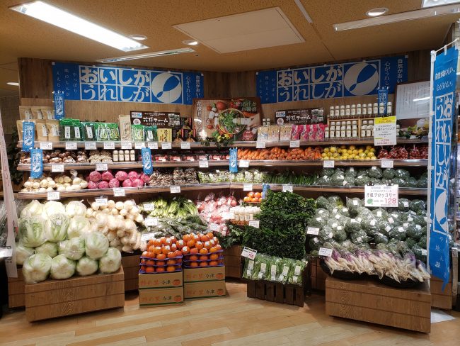 地下1階の食品売場では、フルーツを使用したカットフルーツや地場野菜、店内手づくりの出し巻きやふっくら手づくりおにぎり、地元銘菓やあゆの店「きむら」など、地元の味を強化した。平和堂グループのベストーネが運営する惣菜店「旨季家」の品揃えも増やしている。