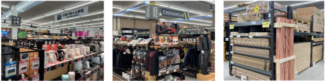 改装では、1号館に、家電の品揃えを強化した「納得家電」、ペット用品・生体を扱う「ペットプラザ」、100 円ショップを新設した。また、2号館に、機能性だけでなくデザイン性にも注力したアパレル「クロスウエア」と、キャンプ・アウトドア用品売場を新設した。さらに、「資材館」を新築し、木材・金物などの建築資材売場を設置した。