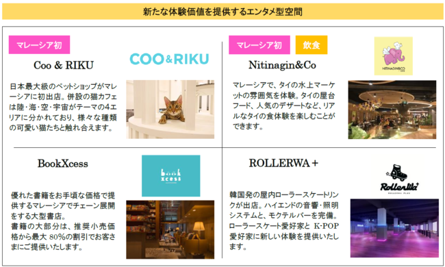 ららぽーとBBCCでは従来型のモノ・サービスを購入する場だけではなく、滞在時間の体験そのものを楽しめる場を用意する。マレーシア国内をはじめ、日本、韓国などさまざまな国で親しまれている店舗をラインナップする。