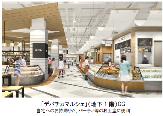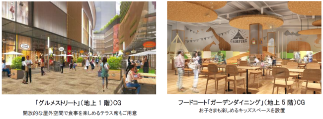 多様なニーズに応えるスーパーマーケット、テイクアウトフードが充実した「デパチカマルシェ」、カジュアルフードコート「カフェテリア」などを有する食の一大集積フロアのほか、屋外での飲食も楽しめる「グルメストリート」、1400席からなる大型フードコート「ガーデンダイニング」など、多様な食のシーンを用意する。