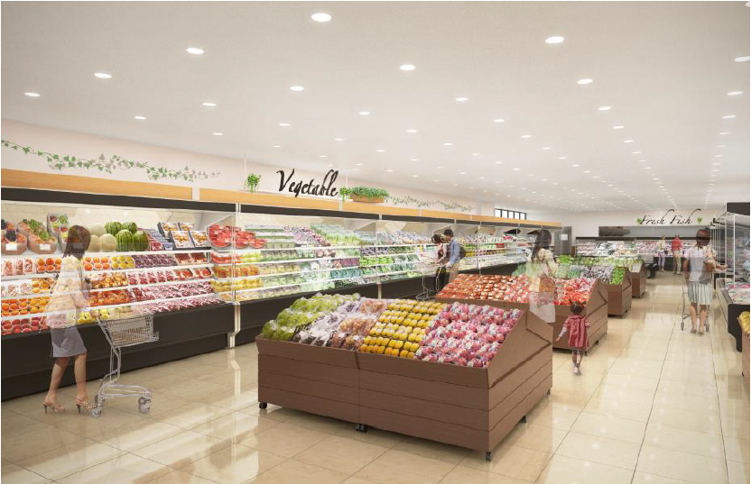 冷凍ケースや冷蔵ケースを新設し、鮮度管理の向上に努める。冷凍食品売場はリーチイン什器に変更し、商品ケースも新たに設置する。駅前立地の利便性を高めるため、パン売場に平台什器を増設し、品揃えを強化する。