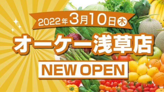 オーケー(株) (神奈川県横浜市、二宮涼太郎社長) は3月10日(木)、東京都台東区に「オーケー浅草店」を出店する。