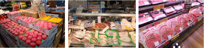 店舗入口の農産売場では、野菜・果物を箱売りやバラ売りで販売する。生花売場では、手軽に花を始められる商品展開や定期的なイベントの開催など、花と植物のある暮らしを提案する。水産売場では、バイヤーが自信をもって買い付けた新鮮な生魚をバラ売りで対面 (調理) 販売するとともに、焼魚・煮魚の品揃えを拡大する。畜産売場では和牛の品揃えを拡大する。