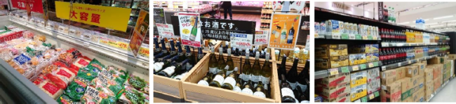 グロサリーや日配では「ヤマナカならでは商品」を中心に、調味料・レトルト商品、ファミリー向けの菓子などおすすめ商品を豊富に取り揃える。また、冷凍食品の売場を拡大し、大容量・業務用・冷凍パンなどの品揃えを充実させる。酒コーナーでは、ワインの売場を拡大し、低価格帯からフランテ店舗で人気の商品まで幅広く品揃えする。まとめ買いニーズへの対応として、ビール類やソフトドリンクはケースでも販売する。