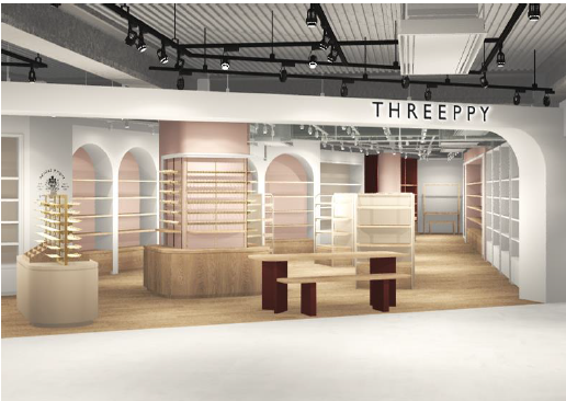 「THREEPPY」は、「300円ではじまるハッピーな生活」というテーマを受け継ぎ、「あいらしい。そして私らしい。」をコンセプトとし、大人かわいい雑貨を中心に4月にリブランディングする。