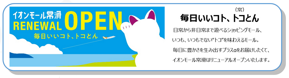 イオンモールnews|専門店約30店刷新「イオンモール常滑」4/22順次オープン