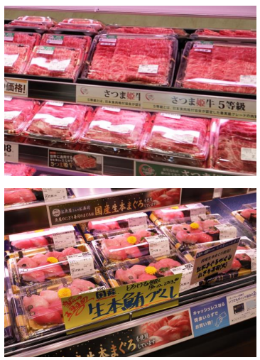 人気の焼肉を強化し、同社オリジナルの鹿児島県産黒毛和牛「さつま姫牛」は日本食肉格付協会が定める肉質等級の5等級を定番で品揃えする。「新鮮」「旬」な素材に拘った「魚屋の寿司」の売場を従来の約1.6倍に拡大し、約30品目を展開する。西宮店限定メニューとして、新鮮な刺身をたっぷり約300g盛り込んだ「びっくり海鮮丼」を展開する。