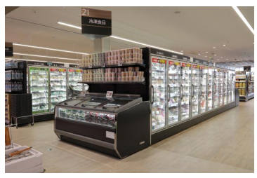 冷凍食品は約560品目を品揃えし、地域最大級の売場を展開する。