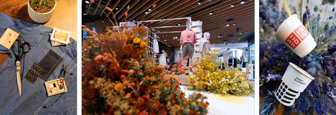 サステナビリティでは、ユニクロの全商品をリユース・リサイクルする取り組み「RE.UNIQLO」のリサイクルボックス設ける。顧客から回収した服は、長年のパートナーである国連難民高等弁務官事務所(UNHCR)を通じて難民支援に活用される。また、英国を代表する芸術大学セントラル・セント・マーチンズとのパートナーシップでは、同校の学生がこれらの服を活用してアップサイクル・プロジェクトに取り組む。