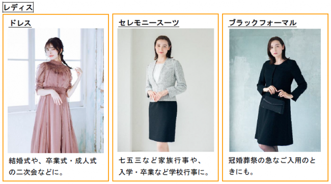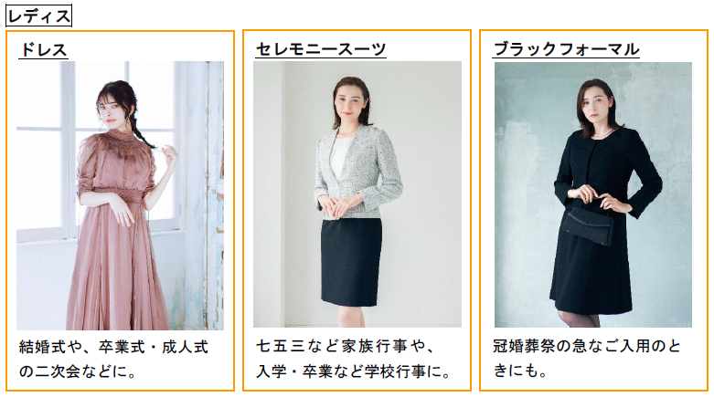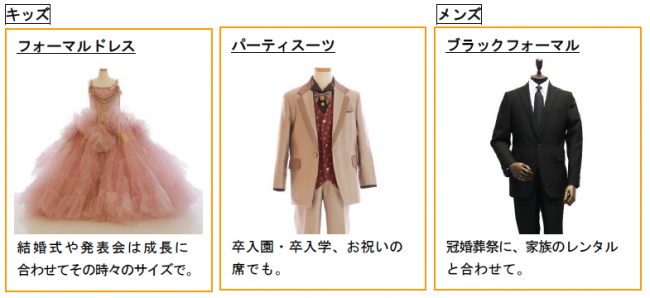 そこで今回オープンさせる「ルルティイオンスタイル新百合ヶ丘」では、1号店の約2倍の面積(約100㎡)に、フォーマルシーンで活躍するレディス・キッズ・メンズのファッションアイテムを計201種類を取り揃える。親子でも入れる広い試着室や写真撮影ができるフォトスポットも設ける。