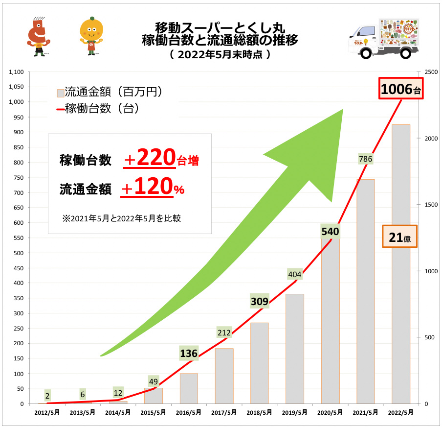 とくし丸news|5月に稼働1000台突破/2021年年間流通総額212億円