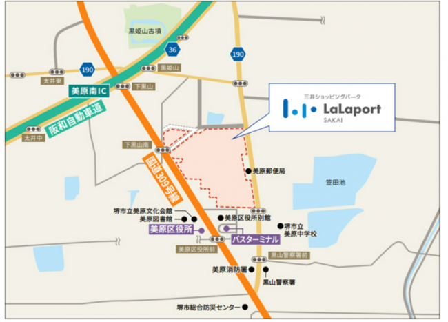 関西エリア4施設目の「ららぽーと」となる同施設は、堺市および美原区における都市拠点と南河内地域および奈良県中部の交流結節拠点としての役割を担う。