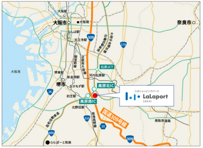 出店地は、大阪の南北を繋ぐ主要幹線道路である国道309号に接道し、阪和自動車道の美原北ICならびに美原南ICが至近に位置する。南阪奈道路も使いやすい立地で、広域からのアクセスに優れる。