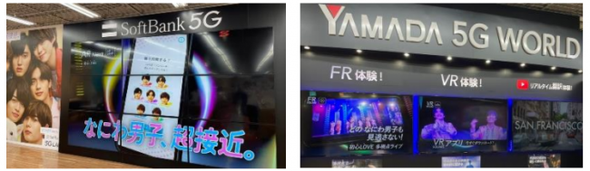 FR体験、VR体験をはじめ、さまざまな5Gコンテンツが体験できる「YAMADA 5G WORLD」コーナーでは、ヤマダ店舗初の巨大モニター(55インチ×9)を設置し、5Gコンテンツを大迫力で楽しめる。