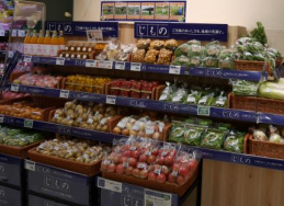 1つ目。地場野菜や地域の銘産品などを集めた「じもの」コーナーを充実させ、生産者から直送の新鮮な野菜・果物のほか、日配品、加工品など、安全・安心、新鮮な地元商品を多数品揃えする。地域で生産されたものを地域で消費する「地産地消」を推進する。