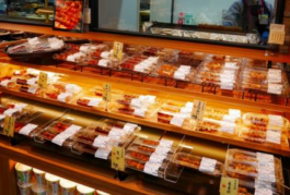 2つ目。デリカ売場では、昼食や夕食の時間帯に合わせてでき立ての商品をタイムリーに提供する。店内で焼き上げる焼き鳥、手づくりおむすび、サラダ、冷惣菜、寿司などの品揃えを充実させる。また、小容量など買いやすい量での品揃えの充実を図る。