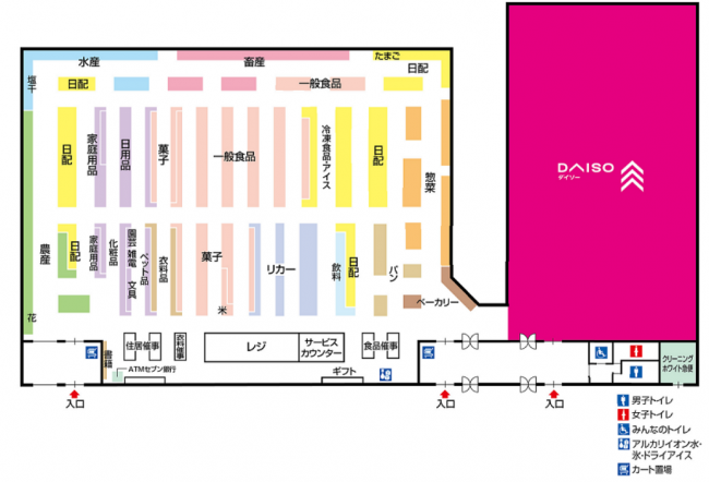 各店舗で好評の「ベーカリーコーナー」を同店にも新規導入する。またセミセルフレジを新規導入し、レジ待ち時間の短縮を図る。