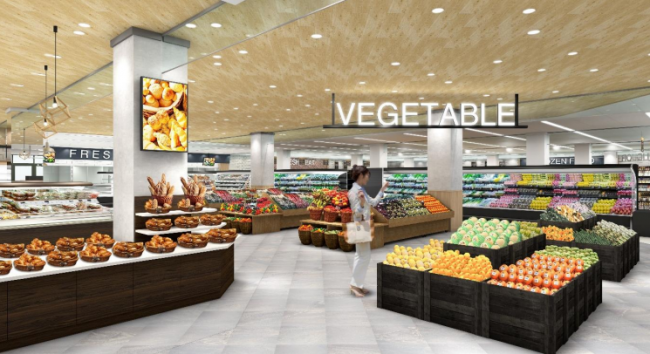 駅側のメイン入口からの入店客が多いことから、強化している惣菜コーナーとともに、鮮度感を演出する青果コーナーをメイン入口側に移設し、高揚感や利便性を提供できる売場へと改装する。特に惣菜、ベーカリー、冷凍食品売場の品揃えを強化する。