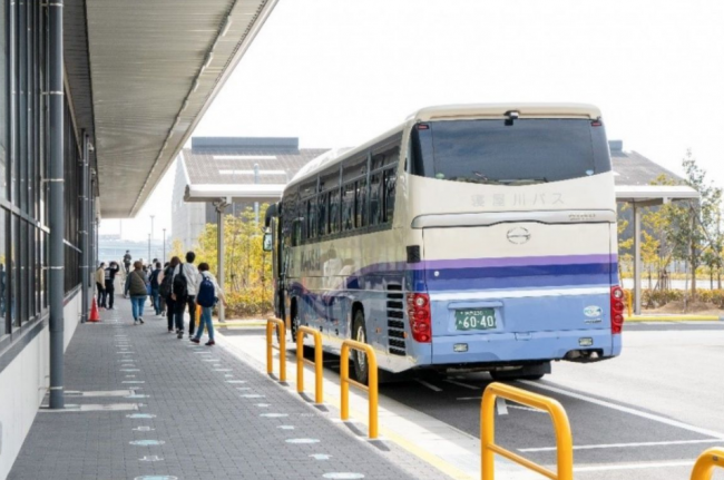 バス停からエントランスに向かう動線は屋根があり、通勤時の悪天候でも雨に濡れず、バスを待つ間の日よけにもなる。