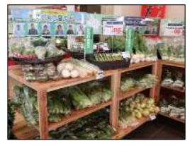 地場野菜コーナー「すぐそこ育ち」では、採れたての新鮮な野菜、果物、加工商品などを品揃えする。陳列される旬の野菜や果物には生産者の名前や顔が見えるようにする。