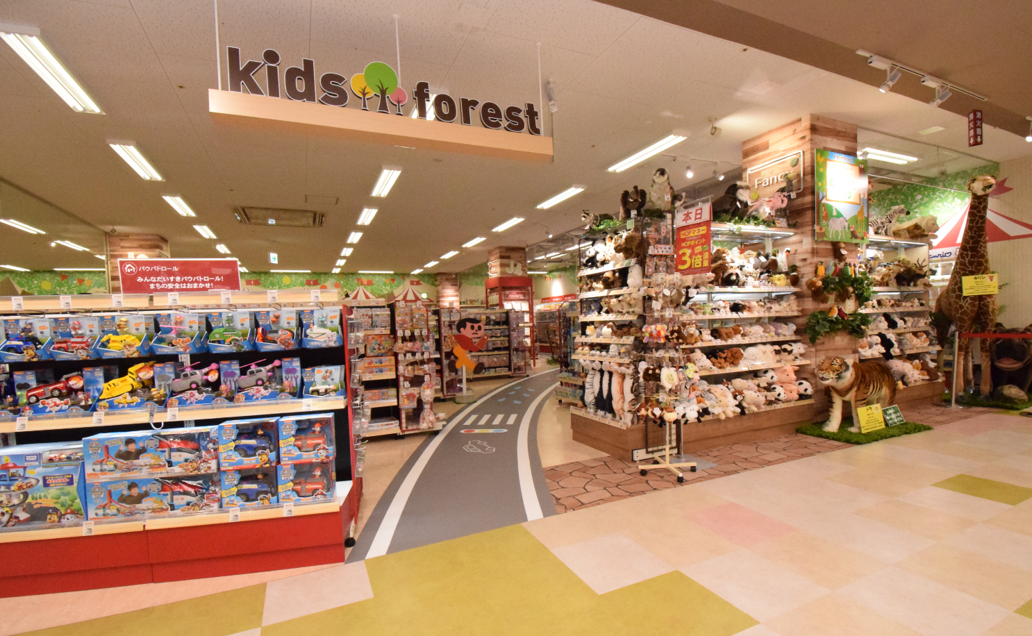 2階の衣料品・暮らしの売場では子ども服・靴や学需要品、おもちゃなどを集めたショップ「キッズフォレスト」が新規に導入した。