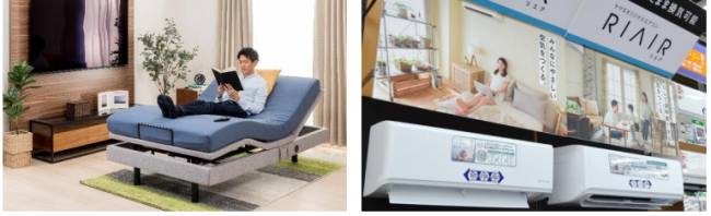 同店では、“ヤマダオリジナル商品”で快適な生活スタイルを提案する。寝室での新たな生活スタイルを提案する電動ベッド、「RIAIR(リエア)シリーズからリビング扇風機や、換気機能を搭載したエアコン、ヤマダホールディングスが独占販売権を有する「FUNAI」ブランドから、AmazonのストリーミングメディアプレーヤーFireTVを搭載したスマートテレビを展開する。