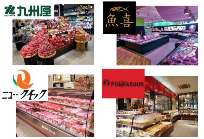青果の「九州屋」、鮮魚の「魚喜」、精肉の「ニュー・クイック」の生鮮専門店を核に、できたて惣菜を提供する「花瀬」「たごさく」「瀬戸内魚惣菜じんぼ」「嘉美」や、横浜発祥の老舗ベーカリー「ポンパドウル」、さらに漬物の「山豊」、塩干の「海満味屋」が揃う。