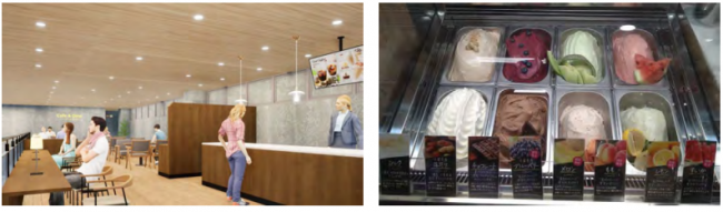また店内2階にはカフェスペース「Café&Dine」を設ける。 コーヒー・フレッシュジュース・ミニストップのアイスクリームや旬の果物が楽しめるオリジナルの手づくりジェラードも品揃えする。