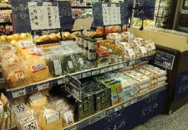 地場野菜や地域の銘産品などを集めた「じもの」コーナーを充実させ、三河エリアを中心とした生産者の新鮮な野菜・果物のほか、三河米豚など地元で育った安全・安心な肉、地元工場でつくられた商品、地元メーカーの加工品・日配品など、地元商品を多数品揃えする。