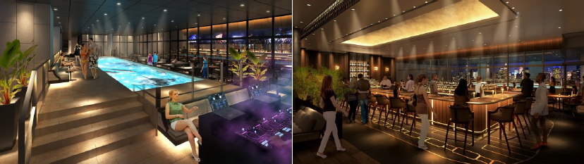 5階には、(合同会社)新宿MILANO 05が「美と健康」をテーマにしたラグジュアリーなウェルネスエンターテインメント施設を開設する。トレーニングジムやプライベートサウナ、テラスプールなどが配置されるウェルネスゾーンに、上質な食事や酒を味わえるオープンキッチンなどを併設する。施設会員を中心とした顧客のライフスタイルに合わせたウェルビーイング体験を提供する。