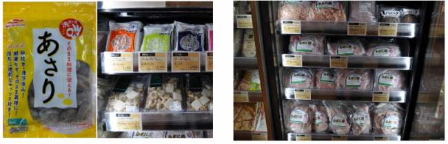 厳格な基準を満たした養殖場で生産された「ASC認証」のあさりや、「発色剤・着色料・保存料」不使用の加工肉など、健康や環境に配慮したお魚・お肉を品揃えする。必要な分だけ取り出せて保存にも便利な冷凍食品も取り扱う。