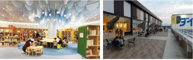 「もっと快適に!」では、荒尾市と連携し 4月に同店にオープンした荒尾市立図書館が、読む・学ぶだけでなくいろんな世代の人が交流できる憩い・集いの場となっている。10万5000冊の蔵書に加え、電子書籍7000点を備えた最先端の施設だ。指定管理者の(株)紀伊国屋書店は、図書館の隣に書店も開業し、本の魅力を幅広く発信している。今回のリニューアルでは図書館の外側にテラス席を設け、店内と屋外を繋ぐ開放感のある空間を作った。また、荒尾市市民サービスセンターを活用した地域イベントの開催や、バスターミナルの利便性を活かした取り組みなど、今後も行政や地元企業との連携を深め、地域に貢献していく。