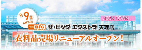 イオンビッグ(株)(愛知県名古屋市、小林健太郎社長)は、9月9日に「ザ・ビッグエクストラ天理店」の衣料品売場をリニューアルオープンする。