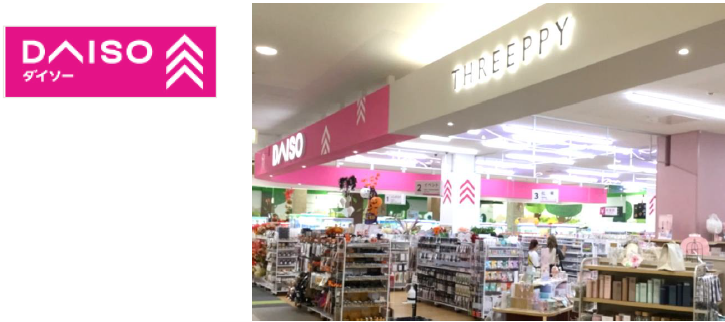 100円ショップの「ダイソー」は移転してリニューアルオープンした。店舗面積を拡張し、新たに300円ショップの「THREEPPY」を併設している。
