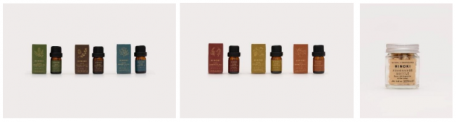 日本有数の銘木の産地として知られた高知県の「四万十ヒノキ」と呼ばれる樹木を使用した天然成分100%のピュアエッセンシャルオイルシリーズ。ヒノキをベースに、さまざまな植物の香りを配合し、全6種類の精油を作った。別売りのヒノキフレグランスボトル(写真右)と合わせて使うと、より香り高いフレグランスとして楽しめる。価格は全6種(写真左からプレーン、シダーウッドヴァージニア、ユーカリ、ティートゥリー&ユーカリ、シトラスブレンド、オレンジ) 各500円(税抜き、以下同じ)、ヒノキのフレグランスボトル 300円。