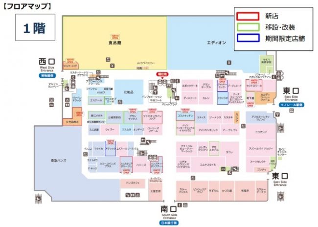 また、テナントは新たに7店舗を出店。そのうち「ハンプティーダンプティー」(雑貨)、「ウサギオンラインストア」(レディス)、「サロン・ド・グッドスタイル」(痩身エステ)の3店舗は沖縄初出店の店となる。その他12店舗の移設・リニューアルを行う。