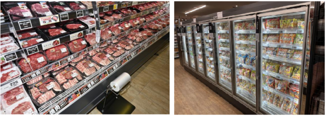 冷凍食品は地域最大級となる約380品目を品揃えする。ワンプレート、レストラン・専門店、スイーツなどのこだわりの商品も充実させる。また馬刺しやホルモン、塩干などの生鮮食品のフローズンも強化する。