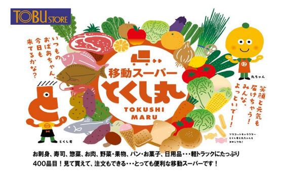 (株)東武ストア(東京都板橋区、土金信彦社長)は(株)とくし丸と提携し、10月27日(木)から埼玉県川越市の「東武ストア 新河岸店」を拠点とした移動スーパー「東武ストア とくし丸5号車」の運行を開始する。