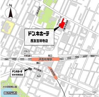 吉祥寺エリアは、2013年11月に吉祥寺駅南口側にオープンした「ドン・キホーテ吉祥寺駅前店」に次いで、2店舗目の出店となる。