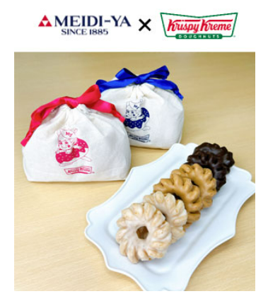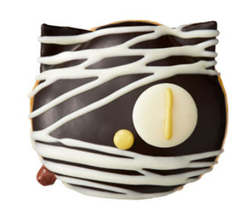 「クリスピー・クリーム・ドーナツ」のキャビネット販売では、コラボレーション限定品となる、「オリジナル巾着バッグ入 ミニクルーラーアソート(ネイビー・ピンク)」1セット(6個入)1188円や、「黒ネコ ミイラチョコ」1個335円を限定発売する。
