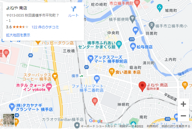 同店はJR横手駅から東に約900mに位置する。4月に閉店した店舗を建て替えオープンする。