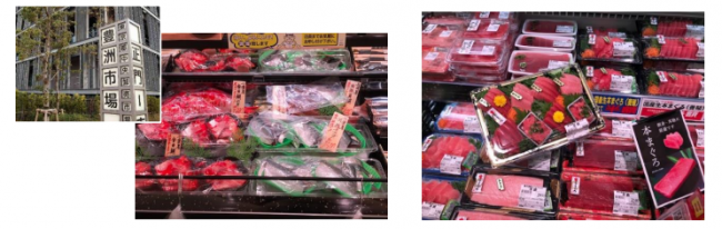 水産売場では、豊洲市場で直接買い付けした鮮魚を品揃えする。夏季に日本海で捕獲されたまぐろを冬季まで育成し、脂をのせ、価値を高め出荷する養殖方法で育てられた人気の高いブランドまぐろ「京都伊根 生本まぐろ」を提供する。畜産売場では、A5ランク和牛の「仙台牛」を品揃えする。また、地元の老舗の味として、昭和38年創業 佃宝(東雲本店)や、大正3年創業 江戸一(築地)の佃煮を展開する。