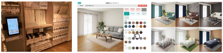 ニトリアプリの新機能「お部屋deコーディネート」を体験できるモニターを、4階のカーテン売場、5階の寝具・寝装品売場に実店舗で初めて設置する。「お部屋deコーディネート」では、着せ替え感覚で楽しく簡単に部屋のコーディネートを試すことができ、気になるインテリアが⾃宅の部屋に合うかどうか、⾊や柄の組み合わせを確かめた上で買うことができる。