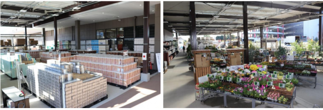 店舗正面の下屋を増床する事で全天候型の売場になり、売場面積が拡大した。ティッシュやトイレットペーパーなどの紙売場を新設したほか、グリーン(園芸)部門の売場を強化した。また正面入口の自動ドアを1口から2口へと増設したことで、買物導線がより歩きやすく便利になった。