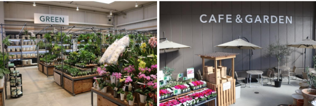 商業施設のグリーン空間を演出するRESSOURCES(ルスルス)の監修で、下屋に展開していた園芸売場を室内化し、園芸館にリニューアルし最新のレイアウトにした。またフードコート内にあったカフェブリッコを園芸館に移設することで、緑あふれるスペースでコーヒーや手作りマフィンを楽しめるようになった。また新たに設置したテラス席では、季節の移り変わりを楽しみながらくつろぐことができる。