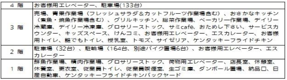 グロサリー売場では、週末のまとめ買いに合わせ、「米」や「飲料」等の大容量商品の品揃えを増やす。子ども向けの菓子売場では、駄菓子屋風の什器に「ガチャガチャ」を設置して楽しさを演出する。アイスクリーム売場では、「ご当地アイス」を導入する。家庭用品は同フロアにドラッグストア「トモズ」が出店することから、重複する商品の売場は縮小する。