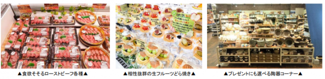 売場は需要が高まっている冷凍食品は、売場を約2倍に拡大し取り扱い商品も冷凍肉、シーフード、アイスや冷凍スイーツ等の種類を増やした。惣菜では店内加工の「オリジナルローストビーフ」を使用した丼ぶりや寿司などを販売する。