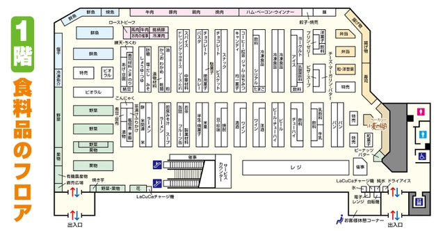 新店舗は売場面積1035坪の2層。改装によって1フロアあたりの売場面積を広げ、食料品の品揃えを拡充する。2階は旧店舗でも支持されていた日用品・衣料品売場に加え、ドラッグコーナーを新設する。